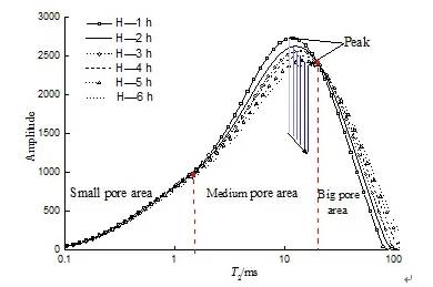 Using low-field nuclear magnetic resonance (NMR) detection and imaging techniques, T2 spectra of the pore structures were obtained for leaching with H2O and (NH4)2SO4 solutions, from which pore distribution images were reconstructed.