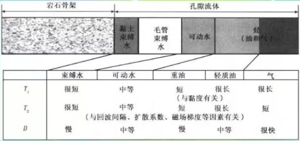 Figure 1 Characteristic T1, T2, and D of Different Pore Fluids