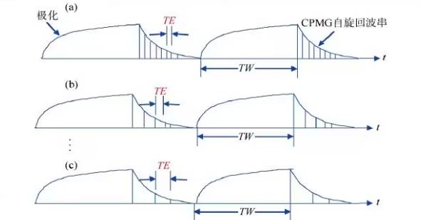In a gradient field, if data is acquired with the same TW but different TE (as shown in Figure 2), the measured transverse relaxation time incorporates fluid diffusion information.