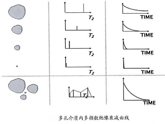 Low-field NMR technology exploits the characteristic of hydrogen nuclei in oil, gas, or water, which resonate in a magnetic field and generate detectable signals. This allows the detection of oil, gas, water, their distributions, and rock physical parameters. Within the rock, pores of varying sizes form the pore network, and the relaxation time reflects the characteristic size of these pores. Accordingly, the T2 spectrum illustrates the pore size distribution: larger pores correspond to longer relaxation times, shifting the T2 distribution curve to the right; smaller pores correspond to shorter relaxation times, positioning the curve to the left.