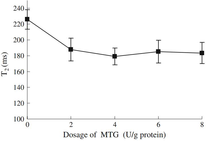 [Reference: Effect of microbial transglutaminase on NMR relaxometry and microstructure of pork myofibrillar protein gel. European Food Research & Technology, 2009, 228(4):665–670.]