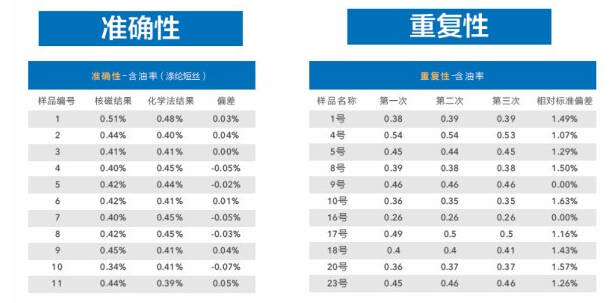 Relative standard deviation (RSD) for oil content ≥ 1%: ≤ 1.000%;