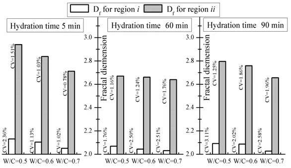 Figure 3. Fractal dimensions of cement pastes with different water–cement ratios