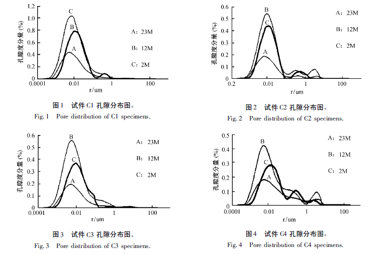 NMR was used to evaluate the porosity and pore size distribution of salt-freeze damaged specimens (Mix groups C1, C2, C3, and C4) under different magnetic field strengths. For comparison, traditional gravimetric (weighing) methods were also used to measure porosity.