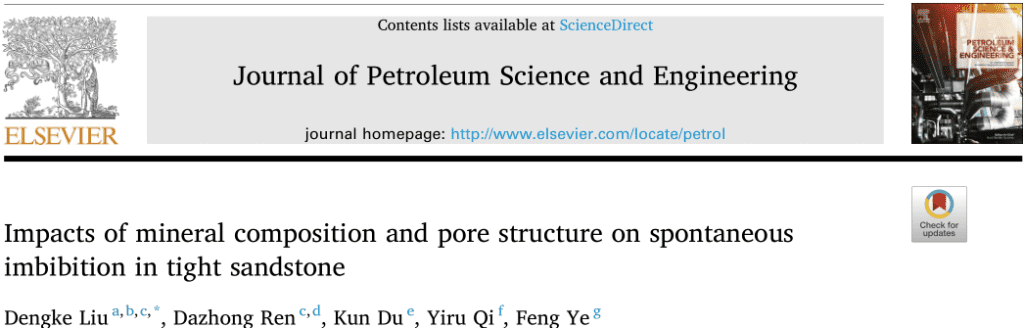 Literature Interpretation | Professor Dazhong Ren's team at Xi'an Shiyou University 《Journal of Petroleum Science and Engineering》:Influence of Mineral Composition and Pore Structure on Spontaneous Imbibition in Tight Sandstone