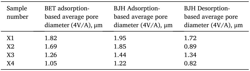 Table 2: Average pore diameters calculated using BET and BJH models