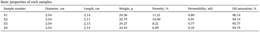 To examine the impact of mineralogy and pore structure on core imbibition, basic petrophysical parameters of sandstone were measured as follows: