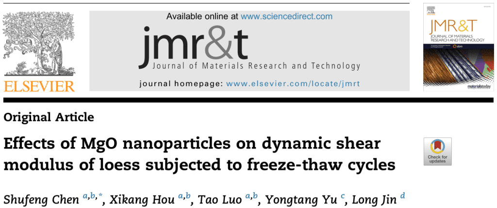 Shufeng Chen, Xikang Hou, Tao Luo, et al. Effects of MgO Nanoparticles on Dynamic Shear Modulus of Loess Subjected to Freeze-thaw Cycles[J]. Journal of Materials Research and Technology, 2022. 18:5019–5031.