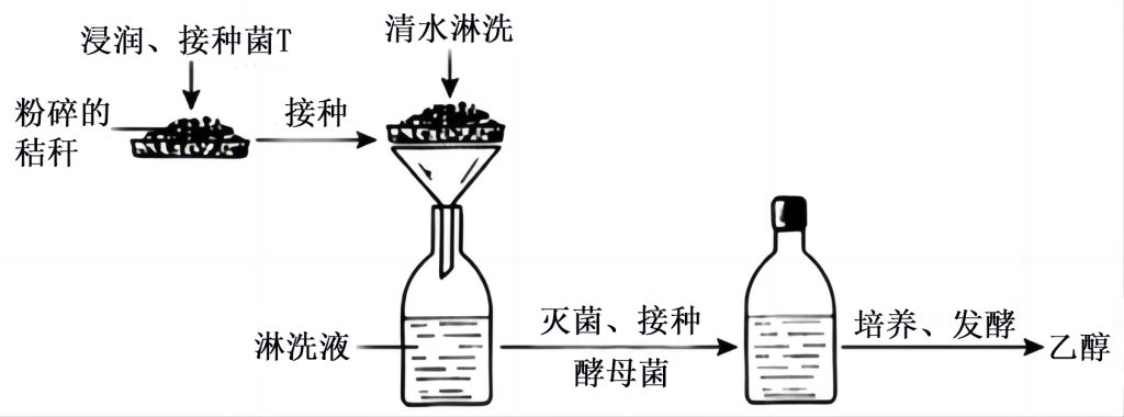 The conversion of biomass to ethanol consists of two main stages: hydrolyzing cellulose into fermentable sugars, followed by fermentation of those sugars to ethanol. A typical biochemical fermentation process is illustrated below[1].
