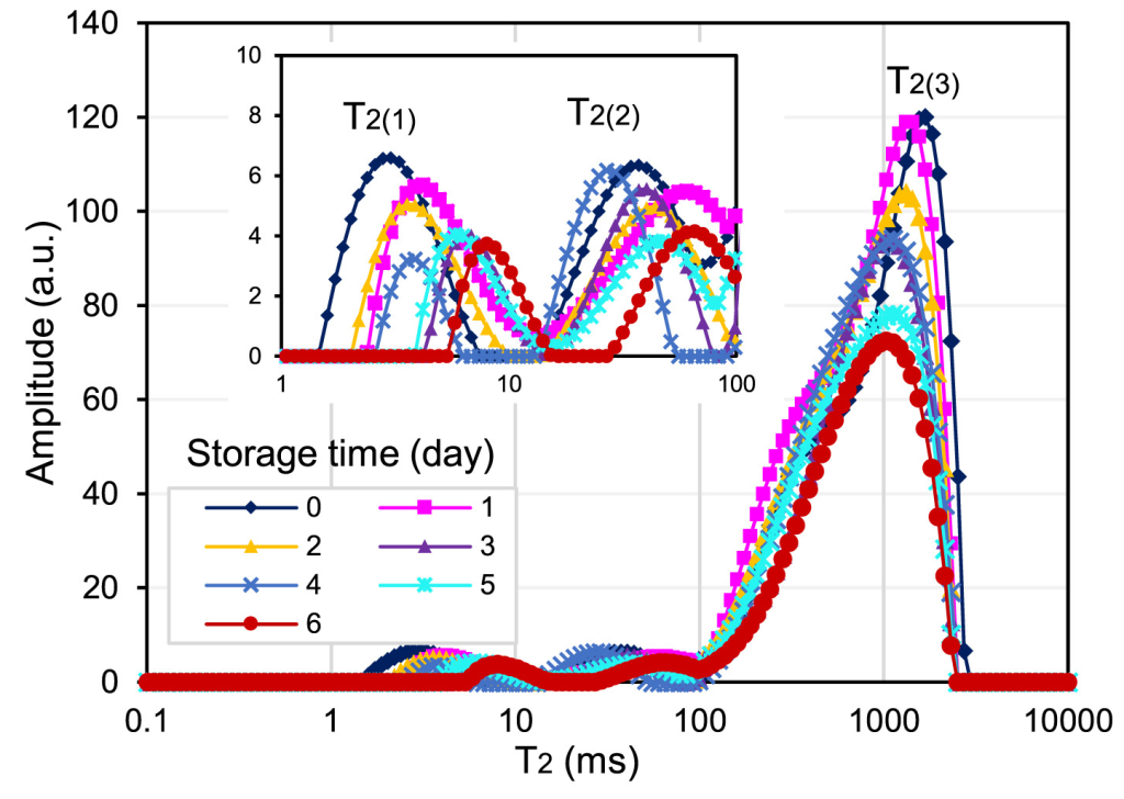 Saccharification converts lignocellulose into soluble sugars and requires pretreatment followed by enzymatic hydrolysis. Low-field NMR can monitor the T2 distribution before and after hydrolysis to reveal how water molecules are bound within the biomass (short-T2 tightly bound water, mid-T2 immobilized water, long-T2 free water). These measurements help assess hydrolysis effectiveness and enable multi-dimensional evaluation of feedstock types (herbaceous, softwood, hardwood), pretreatment methods (steam explosion, acid hydrolysis, etc.), and commercial enzyme formulations, supporting selection and optimization of processing routes. [2][3]