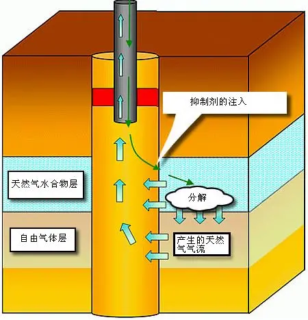 Natural gas hydrates are crystalline compounds in which methane molecules are trapped within a lattice of water molecules under low temperature and high pressure. They are commonly referred to as “flammable ice”.