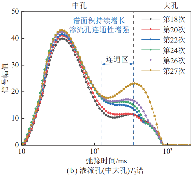 Figure 8 Evolution Curve of the T2 Spectrum in the Crack Connectivity Stage