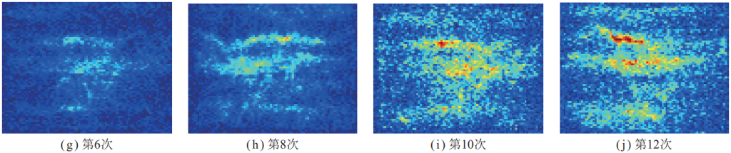 By comparing the changes in the 2D MRI images of the coal sample after multiple vibration load impacts, the distribution and developmental characteristics of the damage regions within the coal sample can be intuitively observed.
