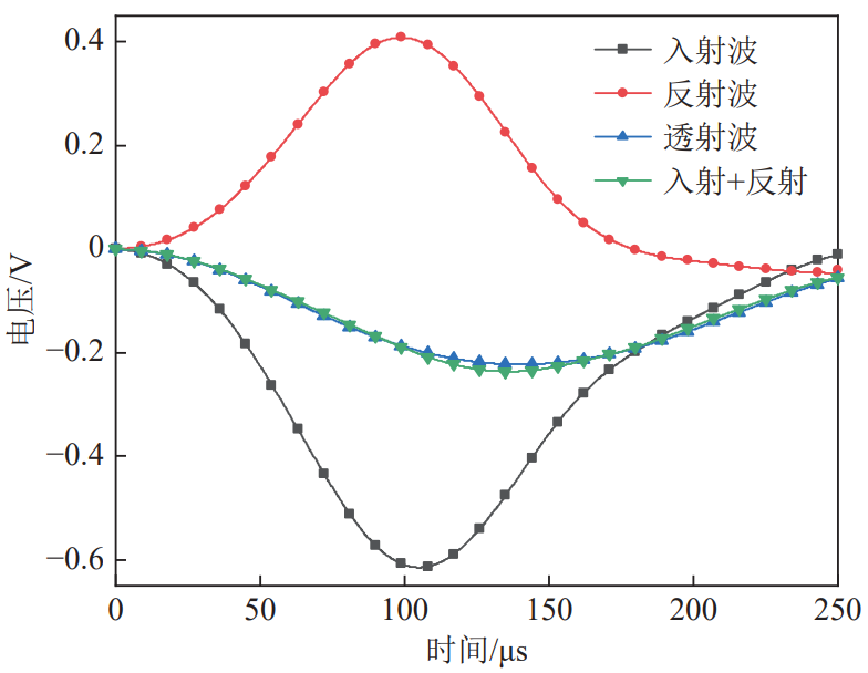 Before the test, a trial impact was conducted to determine the impact air pressure at 0.30 MPa. Strain gauges were attached to the incident and transmission rods to capture the pulse signals generated by the vibration impact. Dynamic strain gauges were used to collect and record the signals, which were used to assess the performance of the test system.