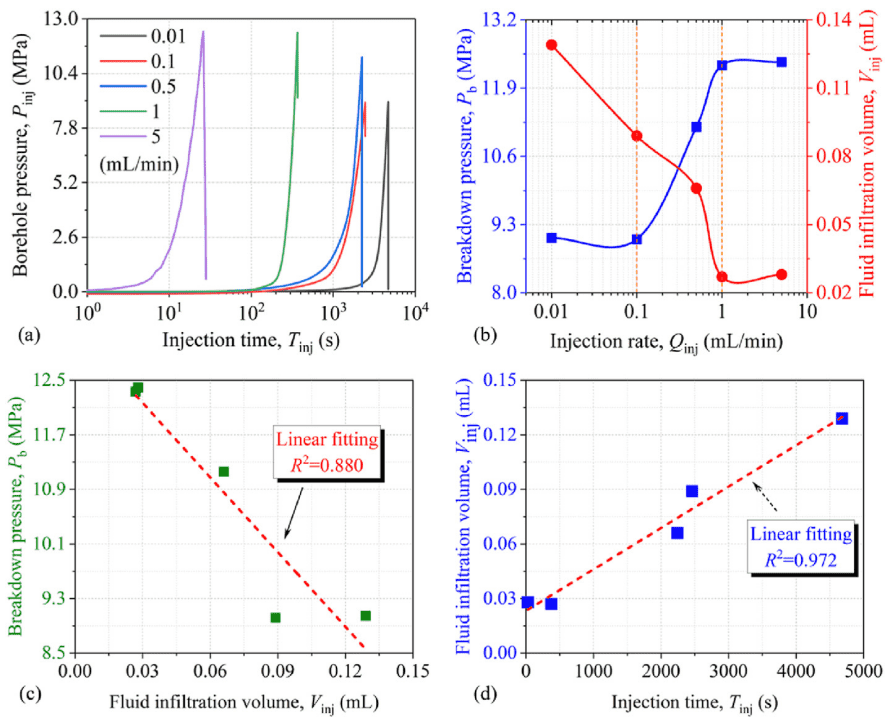 1) Quantification of Permeation Volume: A clear correlation is established between injected volume (Vinj), injection time, and breakdown pressure. This quantitative relationship empowers predictive control of fracture initiation.