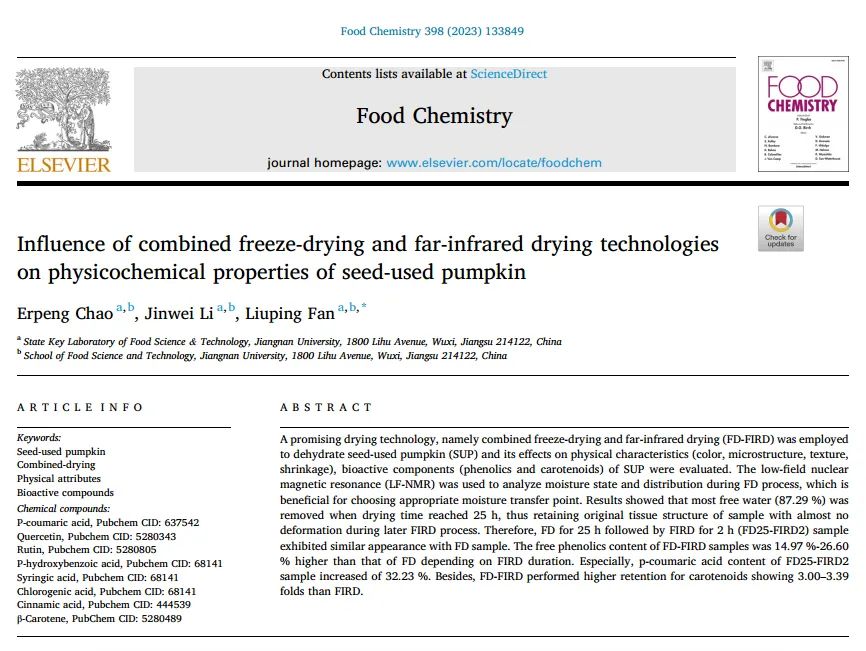 Literature Interpretation | The Effect of Freeze Drying and Far Infrared Combined Drying Technology on the Physicochemical Properties of Seed Pumpkin