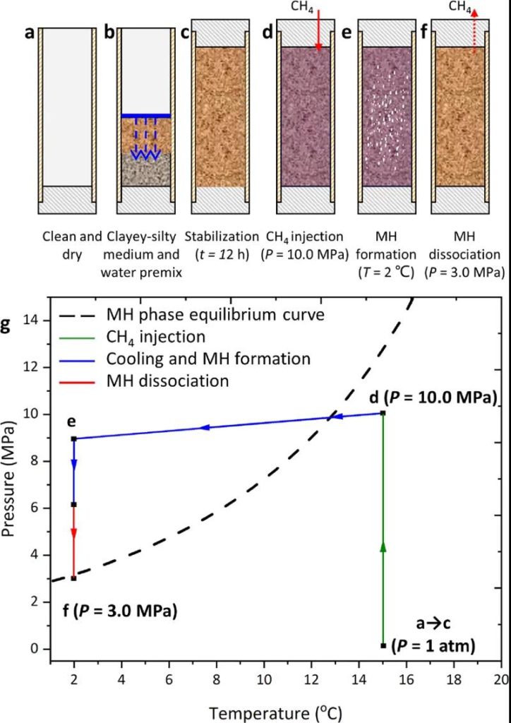 Natural mud-rich sandy gas hydrate reservoirs have been widely discovered in the South China Sea. However, the phase transition behavior of CH4 hydrate (MH) and the associated pore structure evolution and fluid migration patterns remain unclear, warranting further investigation.