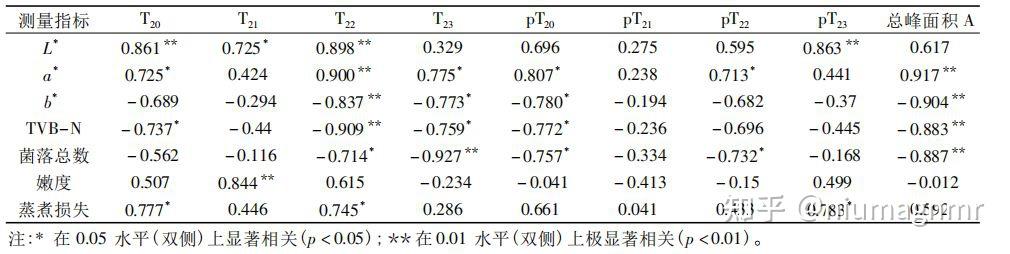 Correlation coefficients between LF-NMR T2 and beef quality indicators