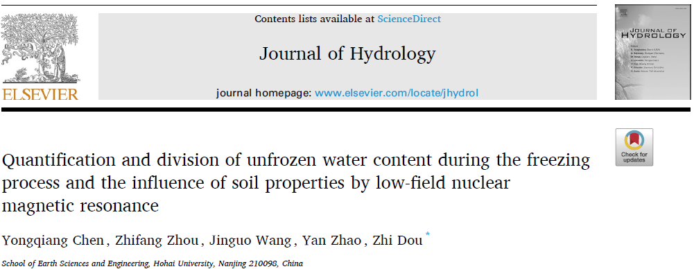 [1] Chen Y, Zhou Z, Wang J, et al. Quantification and Division of Unfrozen Water Content During the Freezing Process and the Influence of Soil Properties by Low-field Nuclear Magnetic Resonance[J]. Journal of Hydrology, 2021, 602(3-4):126719.