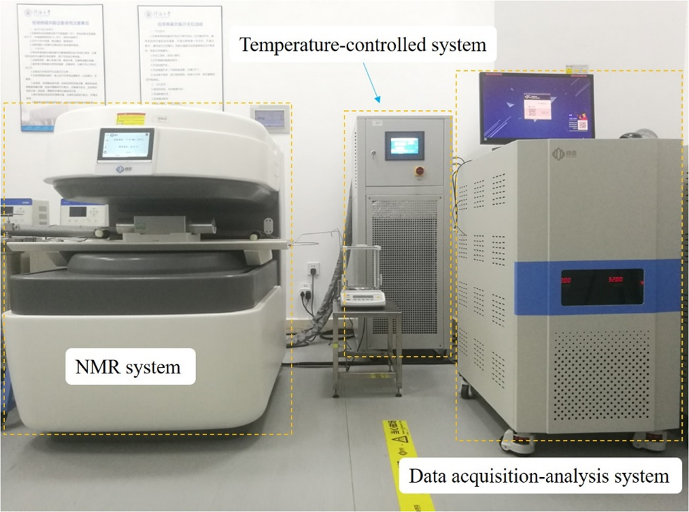 In this study, an NMR instrument with real-time temperature control (MacroMR12-150H-I, Suzhou Niumai Analytical Instruments Co., Ltd.) was used to measure the unfrozen water content during the freezing process of soil. The instrument is shown below: