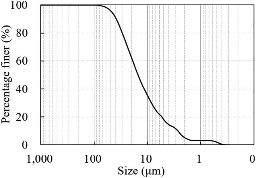 The soil samples were collected from a coastal city in eastern China. Figure 1 shows the particle size distribution of the soil obtained using a laser particle analyzer (Microtrac S3500, USA).