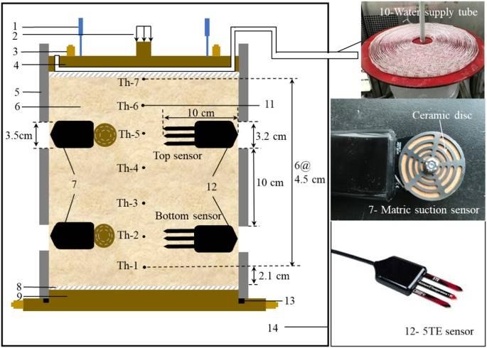 1. After installing the sensors, the samples were pre-cooled in a 2°C environmental chamber for 12 hours to achieve hydraulic equilibrium between the ceramic disks and the surrounding soil.