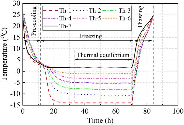 3. The freezing process lasted for 60 hours to achieve thermal equilibrium, allowing the temperature at each monitoring point to stabilize.