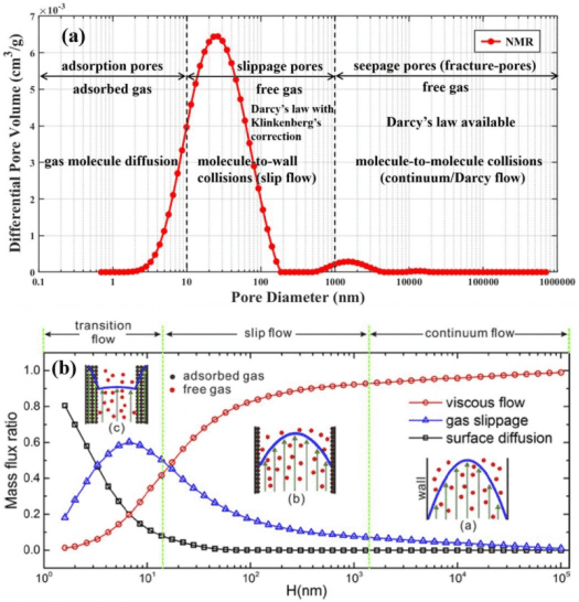Finally, a new pore size classification standard based on gas transport mechanisms in shale was proposed.