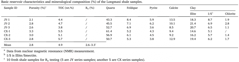 Table 1 Basic Reservoir Characteristics and Mineral Composition of Shale Samples