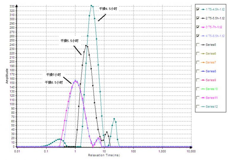 Seven samples dried with the same method but for different durations: T5-1h, T5-2h, T5-3h, T5-4.5h, T5-5.5h, T5-7h, and T5-8.5h. (T5 indicates the drying method; “1h” indicates a drying time of 1 hour.)